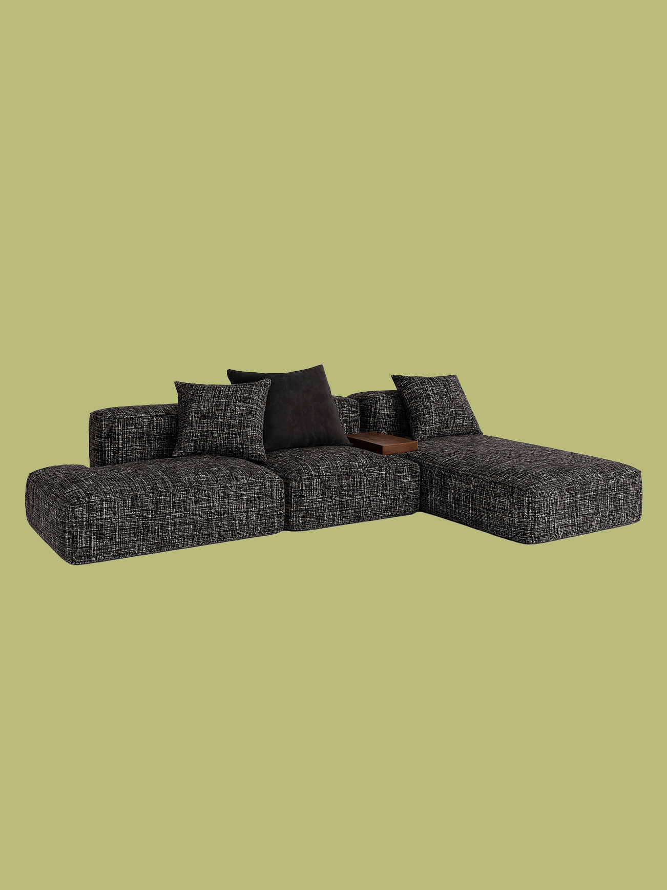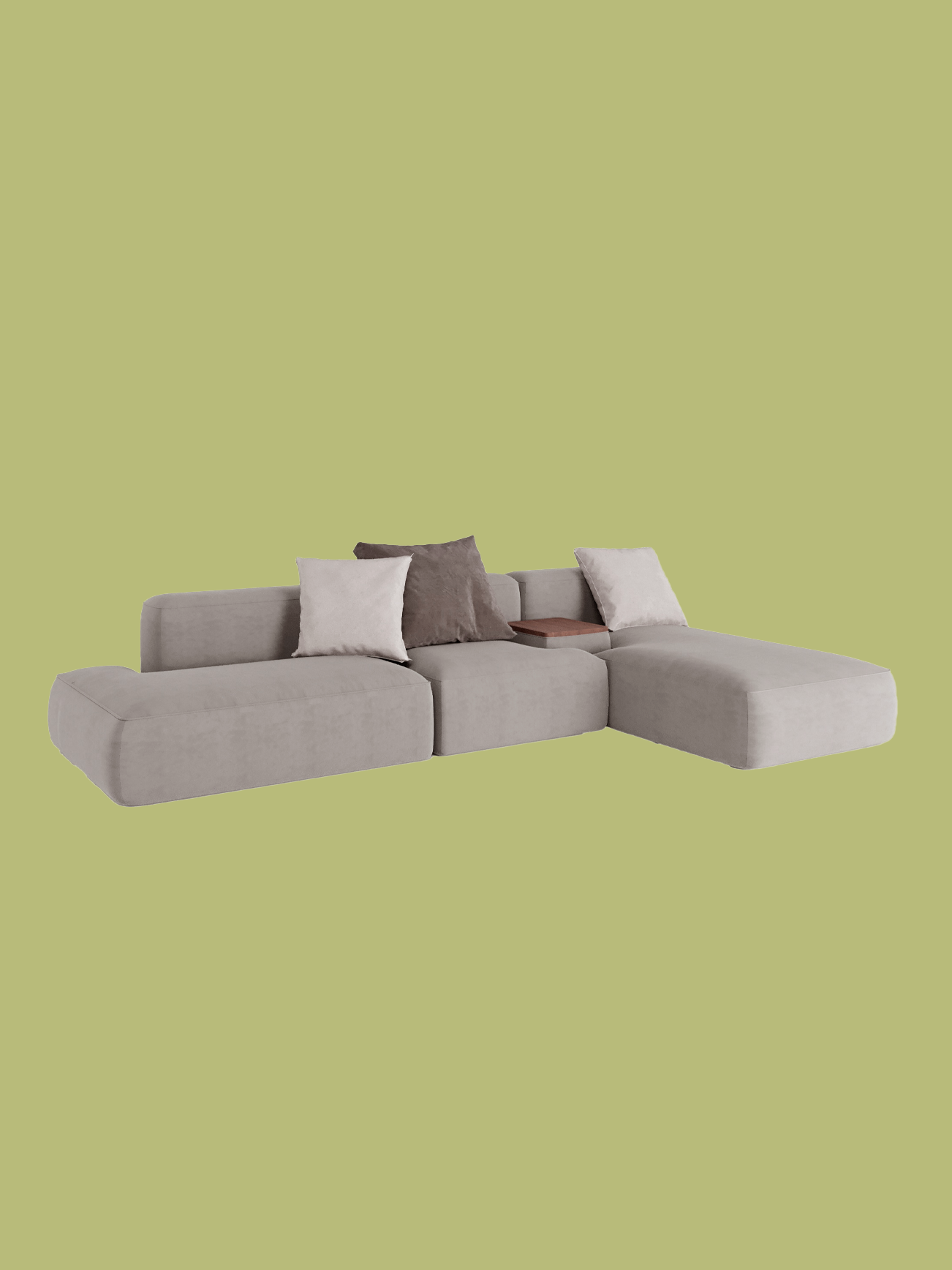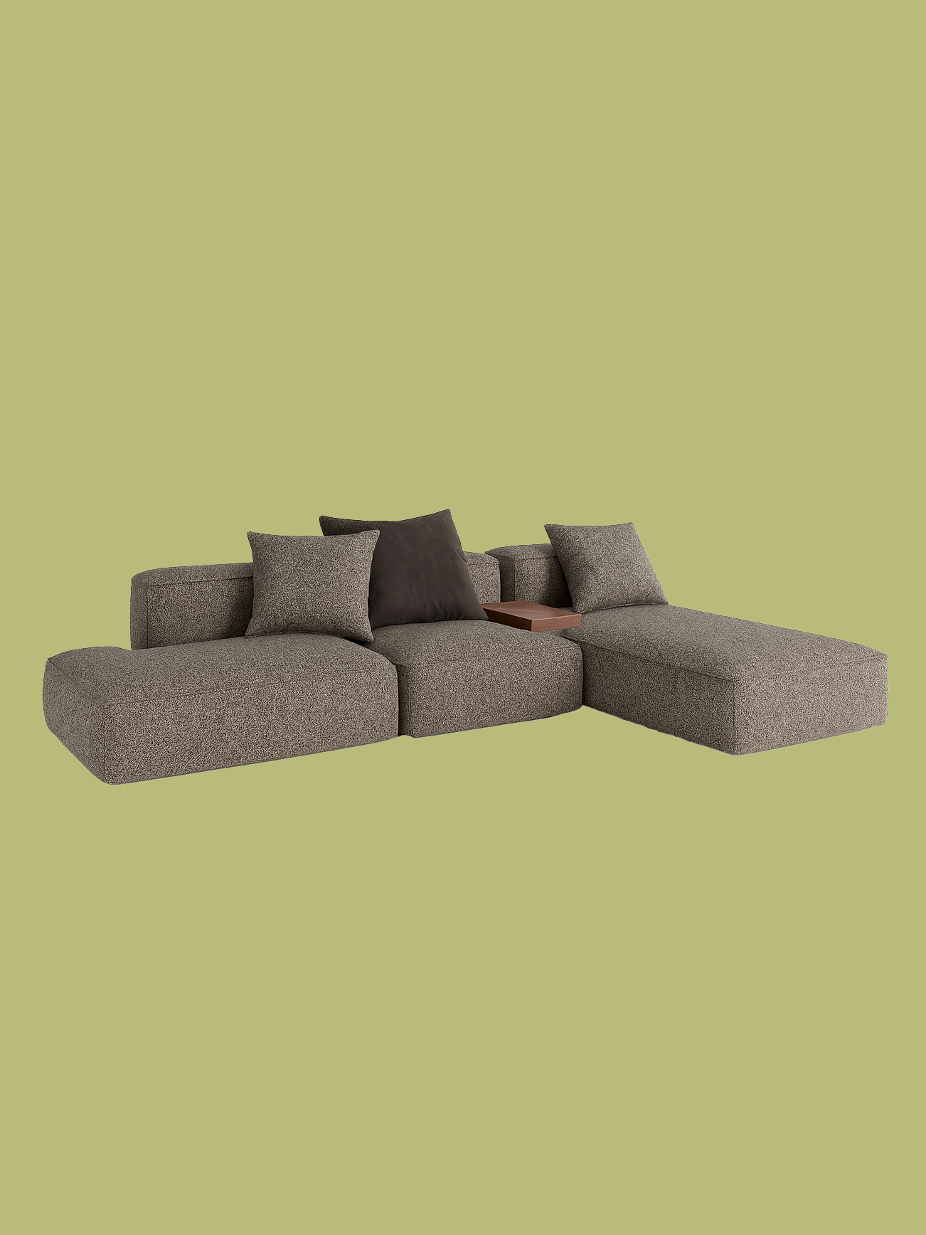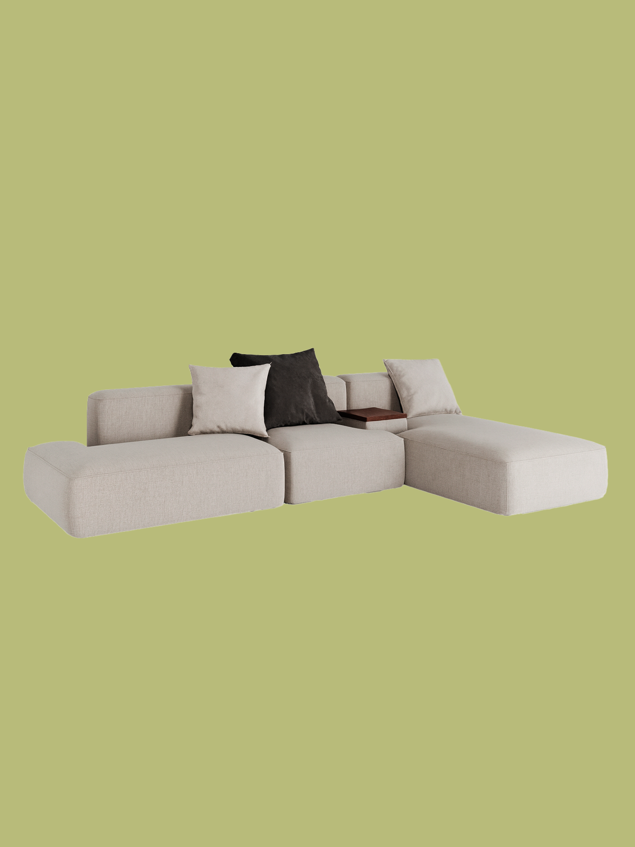 Модульная система с низкой посадкой, позволяющая создавать индивидуальные конфигурации под пространство. Широкие сиденья и объемные подушки обеспечивают высокий уровень комфорта. Каркас выполнен из прочной древесины, наполнение — эластичный ППУ высокой плотности. Встроенные элементы, такие как столик, добавляют функциональности и делают модель дивана удобной для ежедневного использования. Доступен в различных цветах.