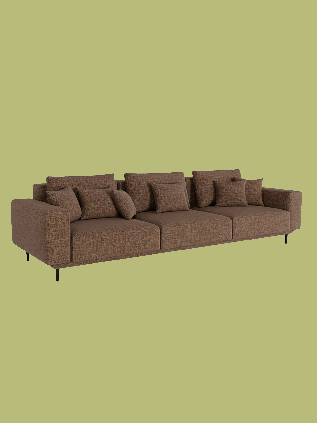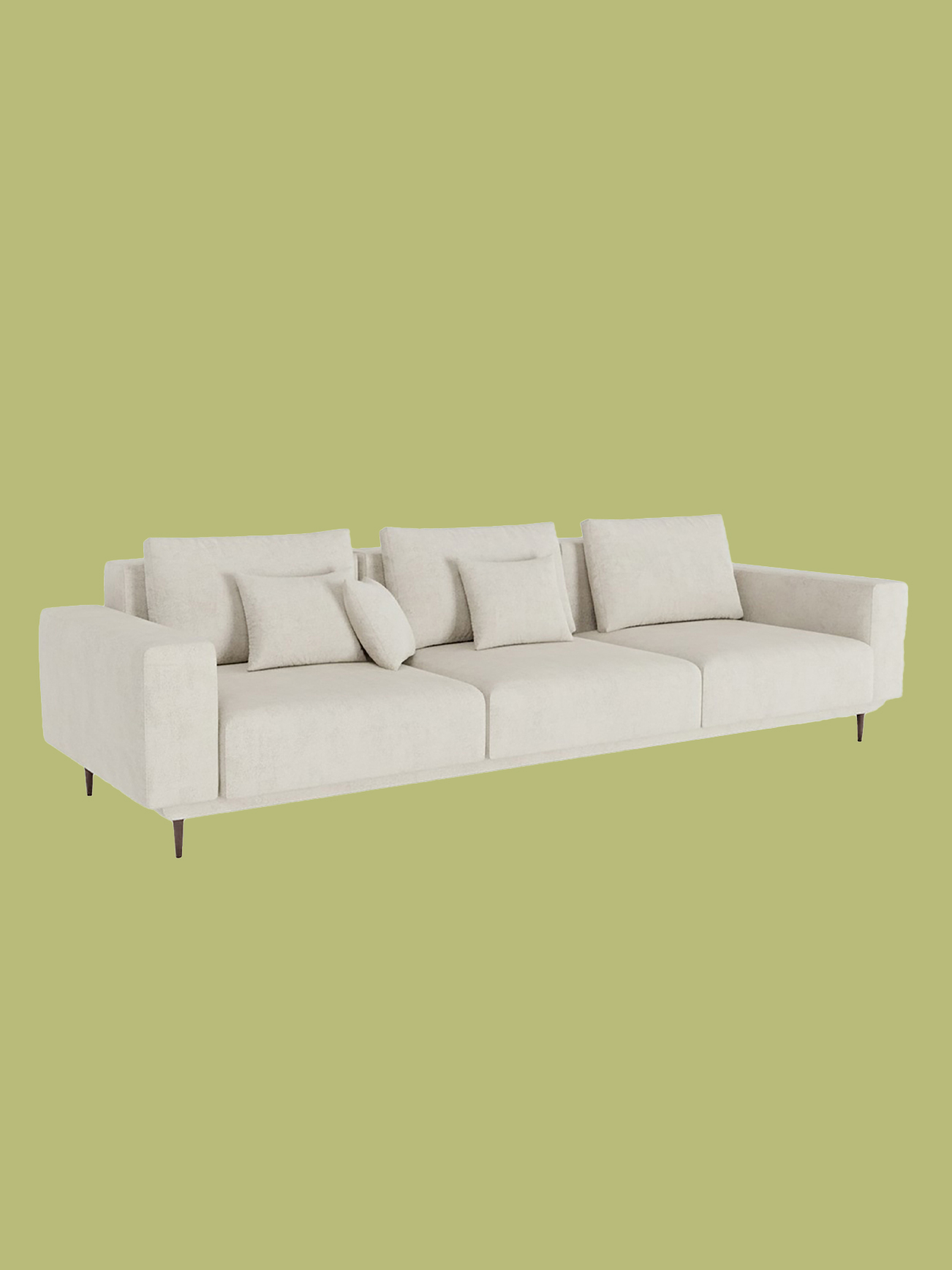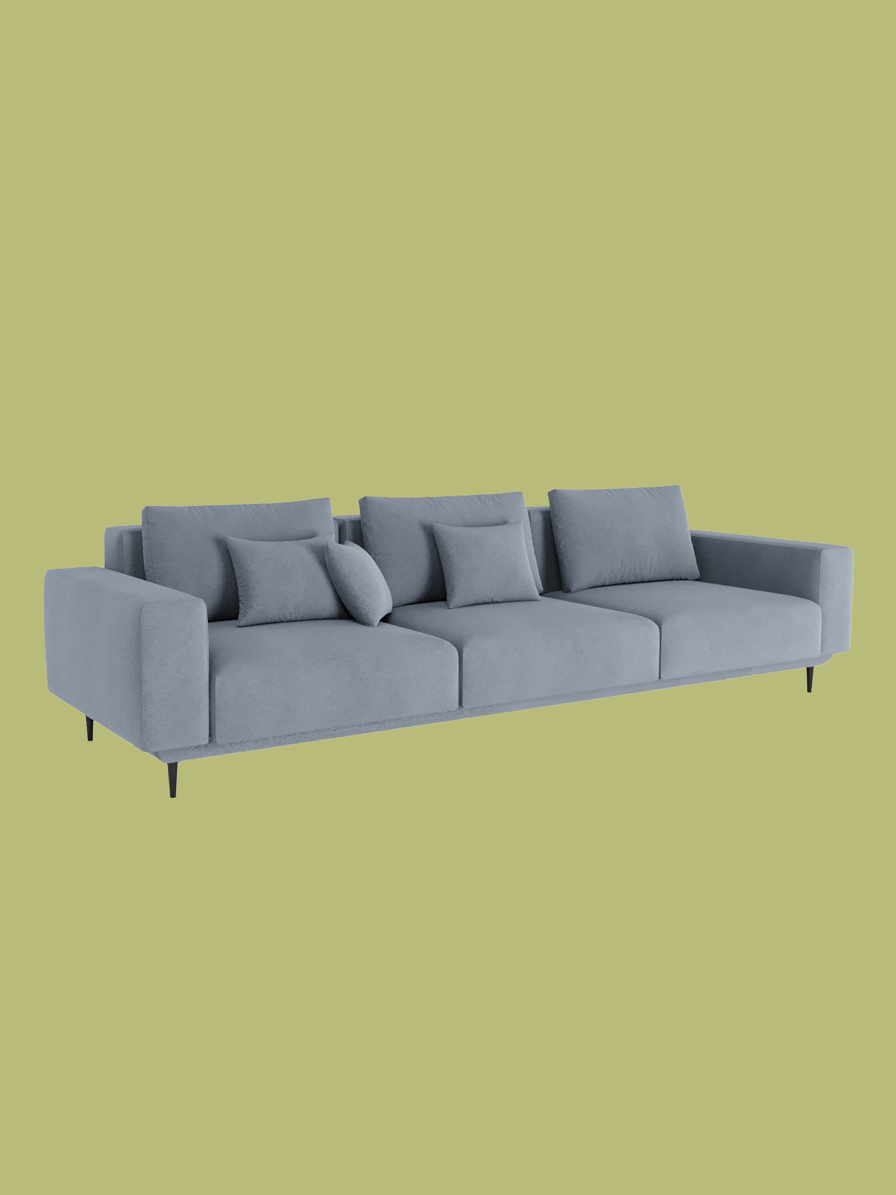 Стильное и просторное решение для гостиной. Лаконичный дизайн, глубокие посадочные места и удобные подушки обеспечивают максимальный комфорт. Высокие ножки придают легкость и облегчают уборку. Диван выполнен в современном стиле и рассчитан на комфортное размещение до 4–5 человек. Каркас изготовлен из прочных материалов, наполнитель с карбоновой крошкой, которая позволяет сохранять форму дивана долгие годы. Доступен в различных цветах.