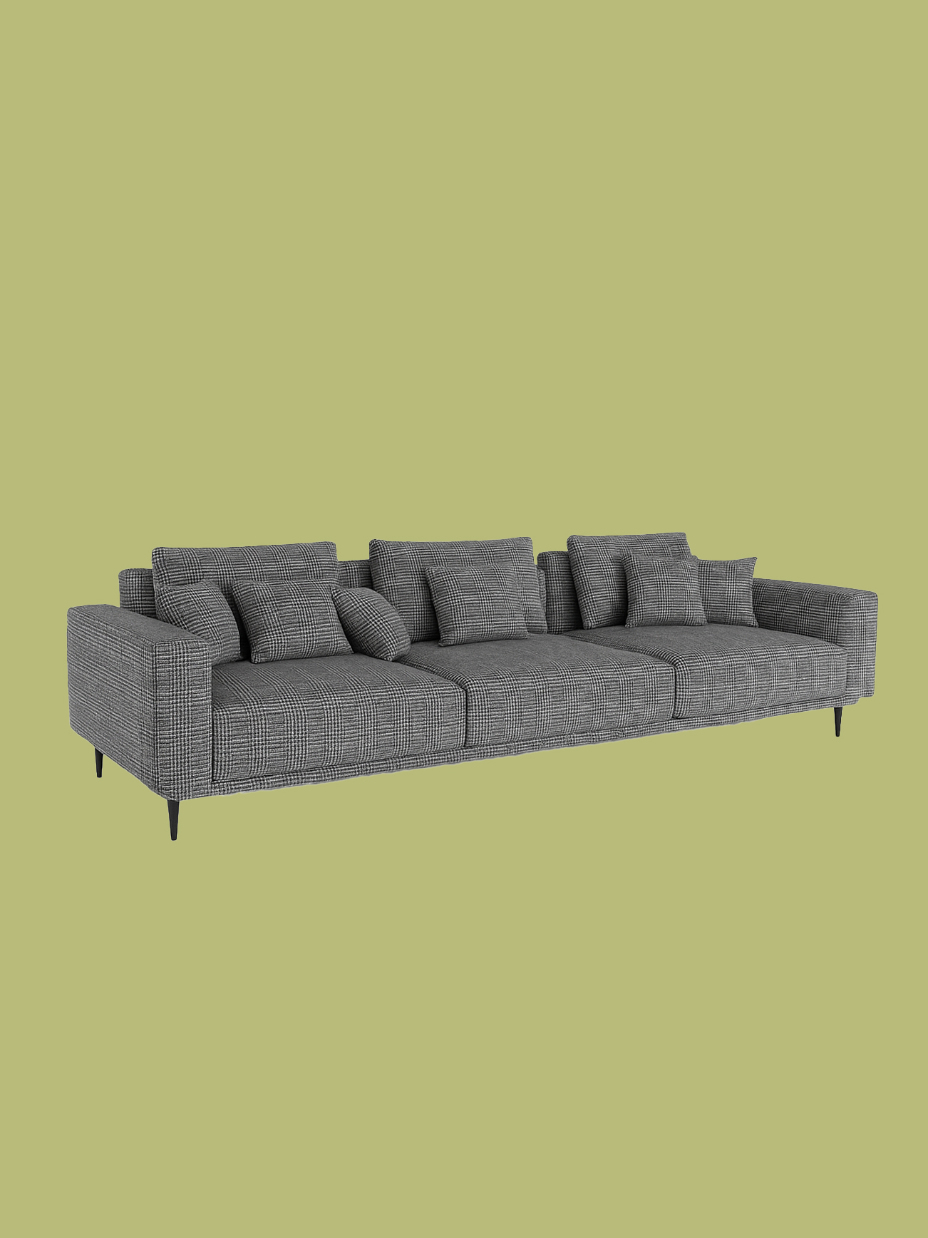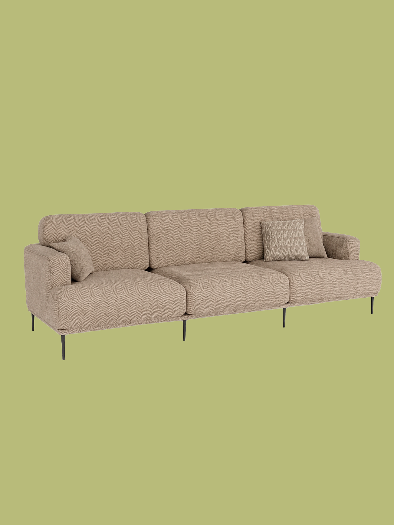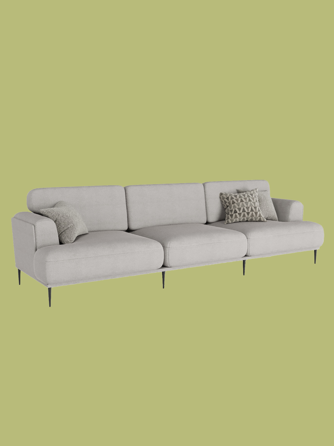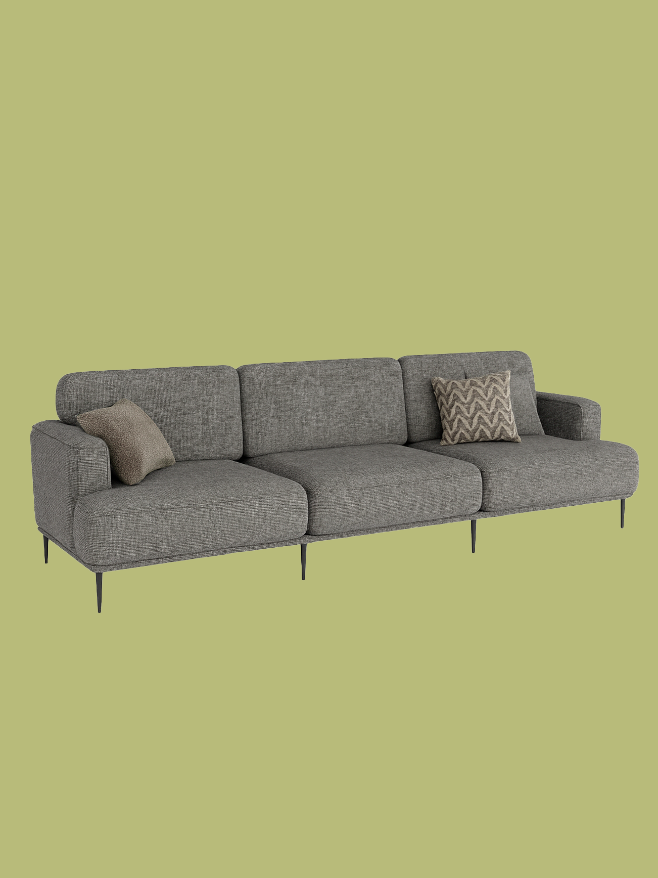 Диван сочетает минималистичный дизайн и продуманную эргономику. Каркас выполнен из прочной древесины, наполнение сидений — высокоэластичный ППУ, обеспечивающий оптимальную поддержку. Узкие подлокотники и тонкие металлические опоры придают модели визуальную легкость, сохраняя при этом надежность конструкции. Идеален для современных интерьеров с акцентом на комфорт и функциональность.