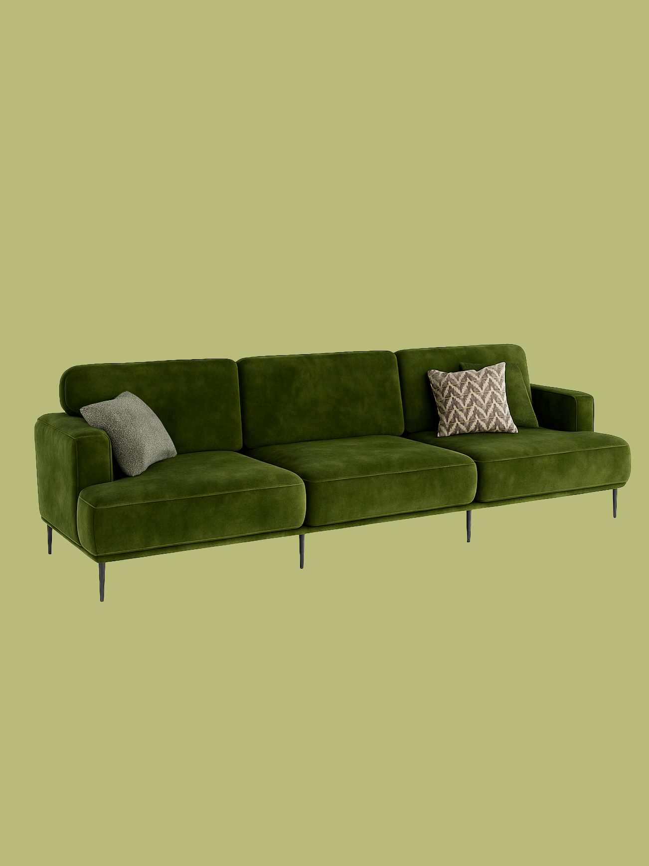 Практичная модель с глубокими посадочными местами и мягкими подушками. Прочный каркас и наполнение из высокоэластичного ППУ обеспечивают долговечность. Обивка из износостойкой ткани проста в уходе, а компактные подлокотники делают диван универсальным для современного интерьера.