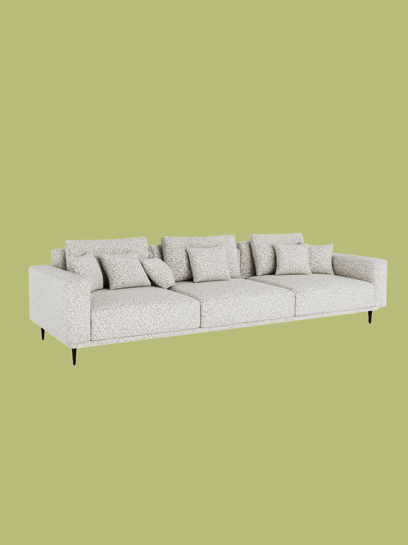 Диван выполнен в модульной конструкции, что обеспечивает удобство при транспортировке и размещении в интерьере. Каркас изготовлен из прочных материалов, наполнитель сидений и спинок с карбоновой крошкой, что надолго сохраняет форму дивана. Обивка выполнена из износостойкой ткани с объемной текстурой, устойчива к потертостям и проста в уходе. Низкая посадка и мягкие линии делают диван максимально комфортным для ежедневного использования. Доступен в различных цветах.